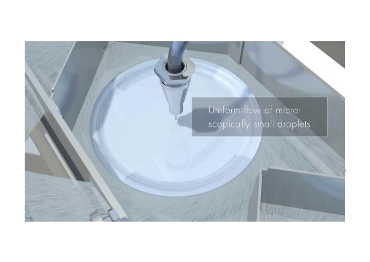 LIQUID APPLICATION WITH NON-CONTACTING APPLICATION SYSTEM With WEKO-Fluid-Application-System (WFA), consisting of WEKO-BASIC and WEKO-SIGMA, paper, textile, nonwoven and other webs can be ideally conditioned. The liquid can be applied precision-metered through spray application. What's more, the modular system can be adjusted flexibly enough to be profitable also with very small production runs.